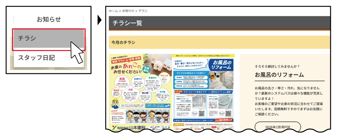 当社が毎月発行しているチラシのまとめページを作成いたしました。